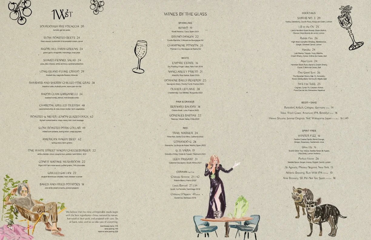 I am going to make some first iterations of the menu based on the owner’s insight: One White Street should feel cheeky yet elevated.