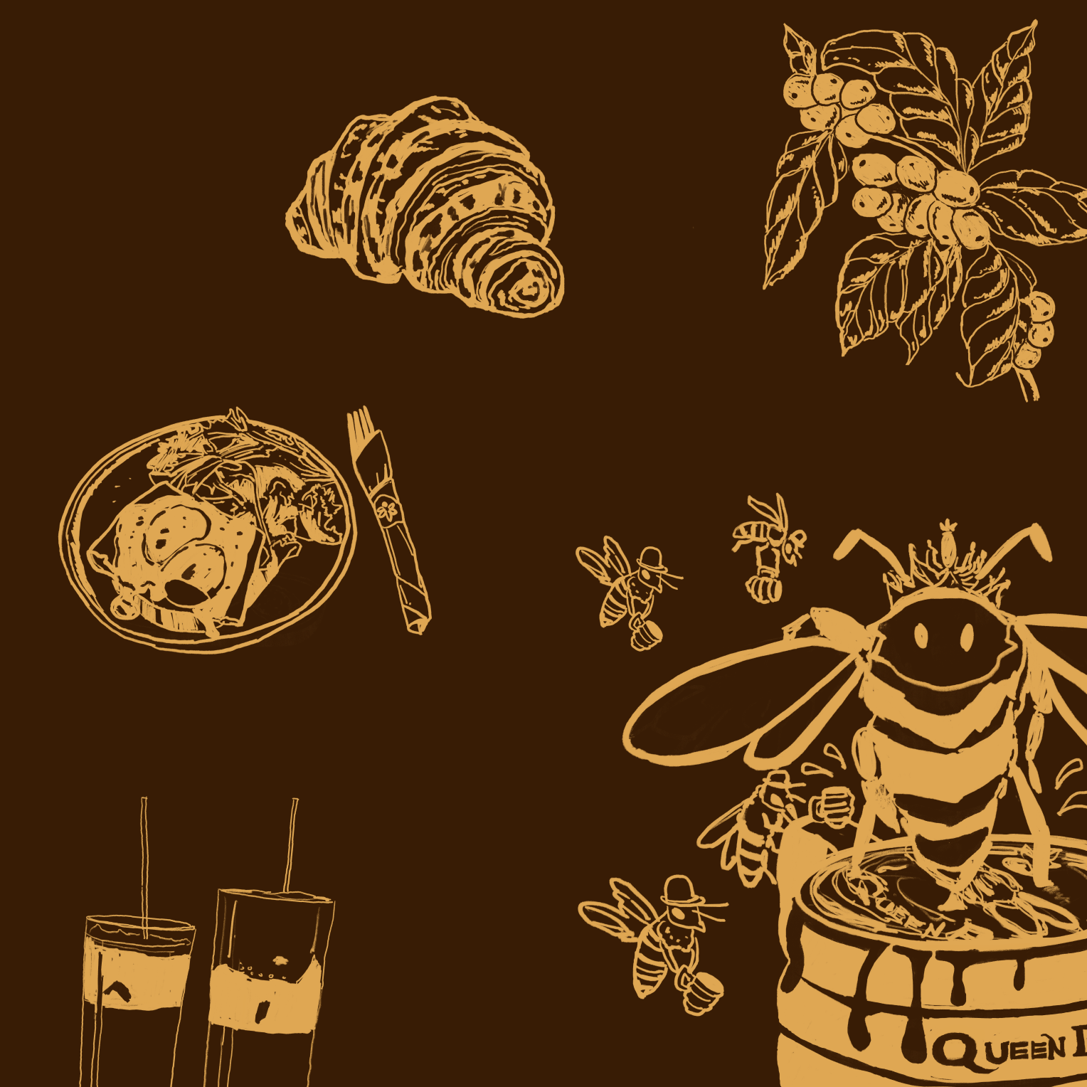 Queen B Cafe is a neighborhood café known for eggs Benedict. A relaxed brunch spot. I also helped design bee-themed wall decals there.