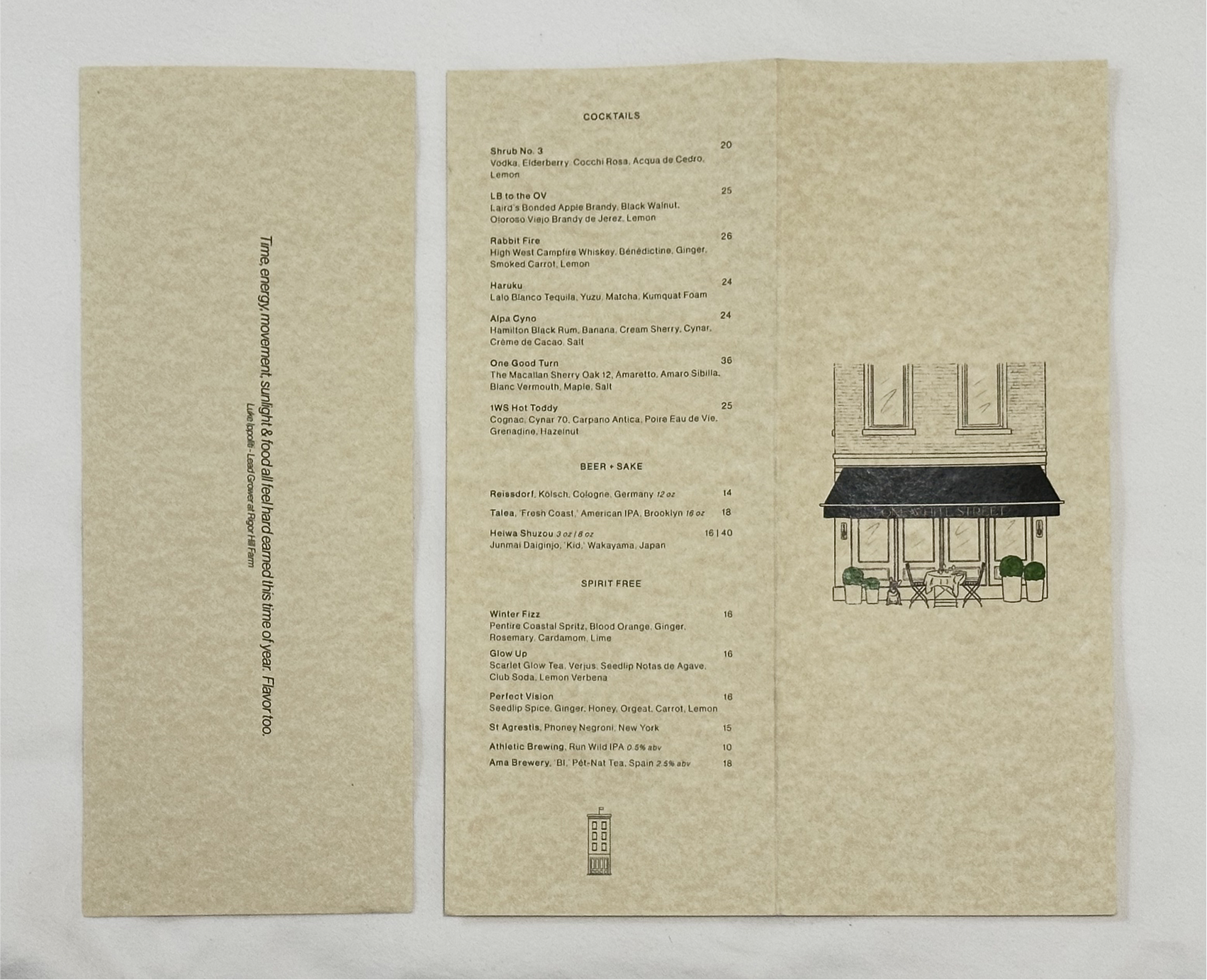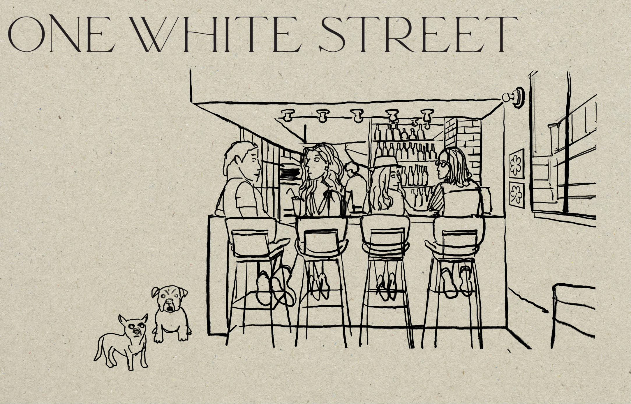 One White Street is a neighborhood restaurant in Tribeca, NYC next to a cafe owned by its owner.