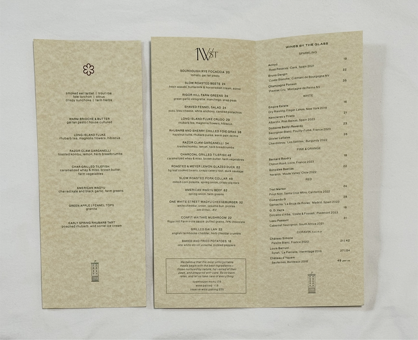 Left (Narrow One): Tasting Menu. Right: A La Carte Menu