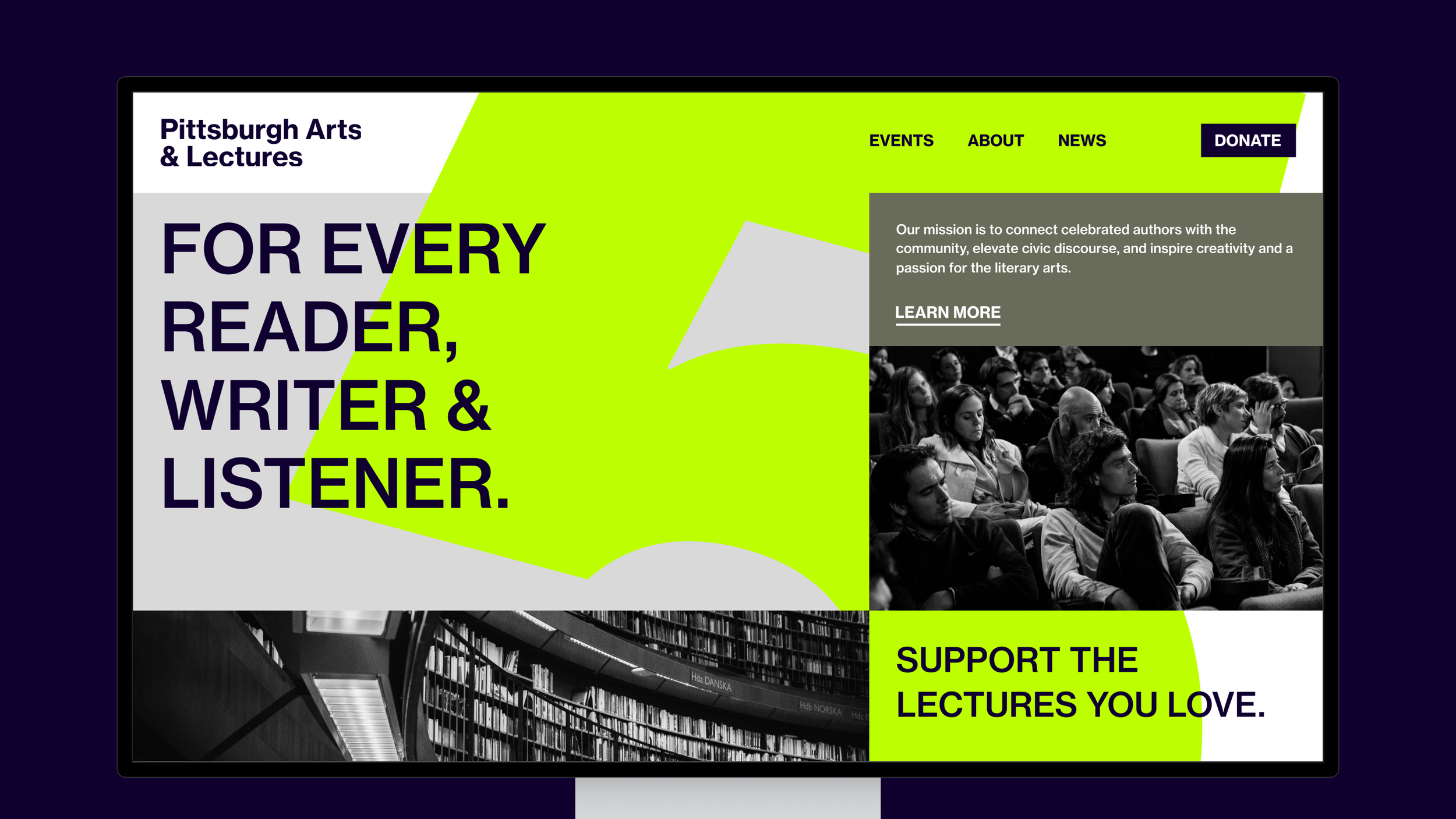 Pittsburgh Arts & Lectures was a student project focused on refining the branding of their lecture series.